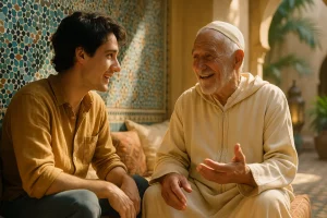 Ce que j’ai appris au fil des visites, c’est que les valeurs marocaines tournent beaucoup autour de la famille et du respect. L’hospitalité est sacrée – même si on n’a pas grand-chose, on le partage toujours. Le respect des aînés est aussi très présent, c’est pour ça que j’essaie de ne pas parler trop fort quand je suis avec mes grands-parents. Et puis, il y a cette importance accordée aux relations humaines, où l’on prend le temps de prendre des nouvelles de tout le monde avant de parler de soi. Pour moi, comprendre ces valeurs, c’est déjà un grand pas vers le cœur de ma famille.